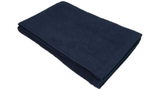落ち着きあるネイビーが、施術空間に信頼感と高級感を。安心の綿100%、大判サイズのプロ仕様バスタオル。